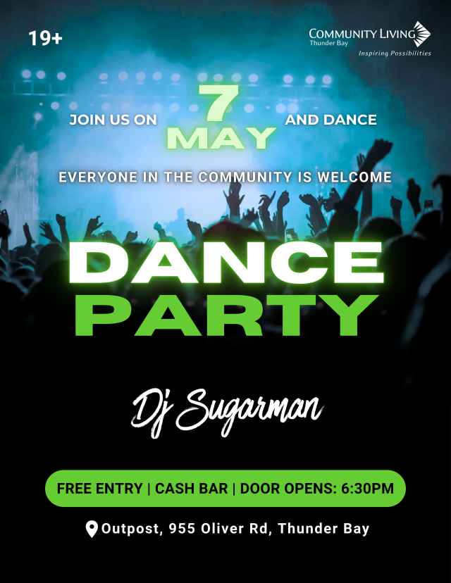 Community Living Thunder Bay is hosting a Dance Party on May 7 featuring DJ Sugarman spinning the beats. Whether you love to dance or just want to enjoy a fun night out, this is the place to be.